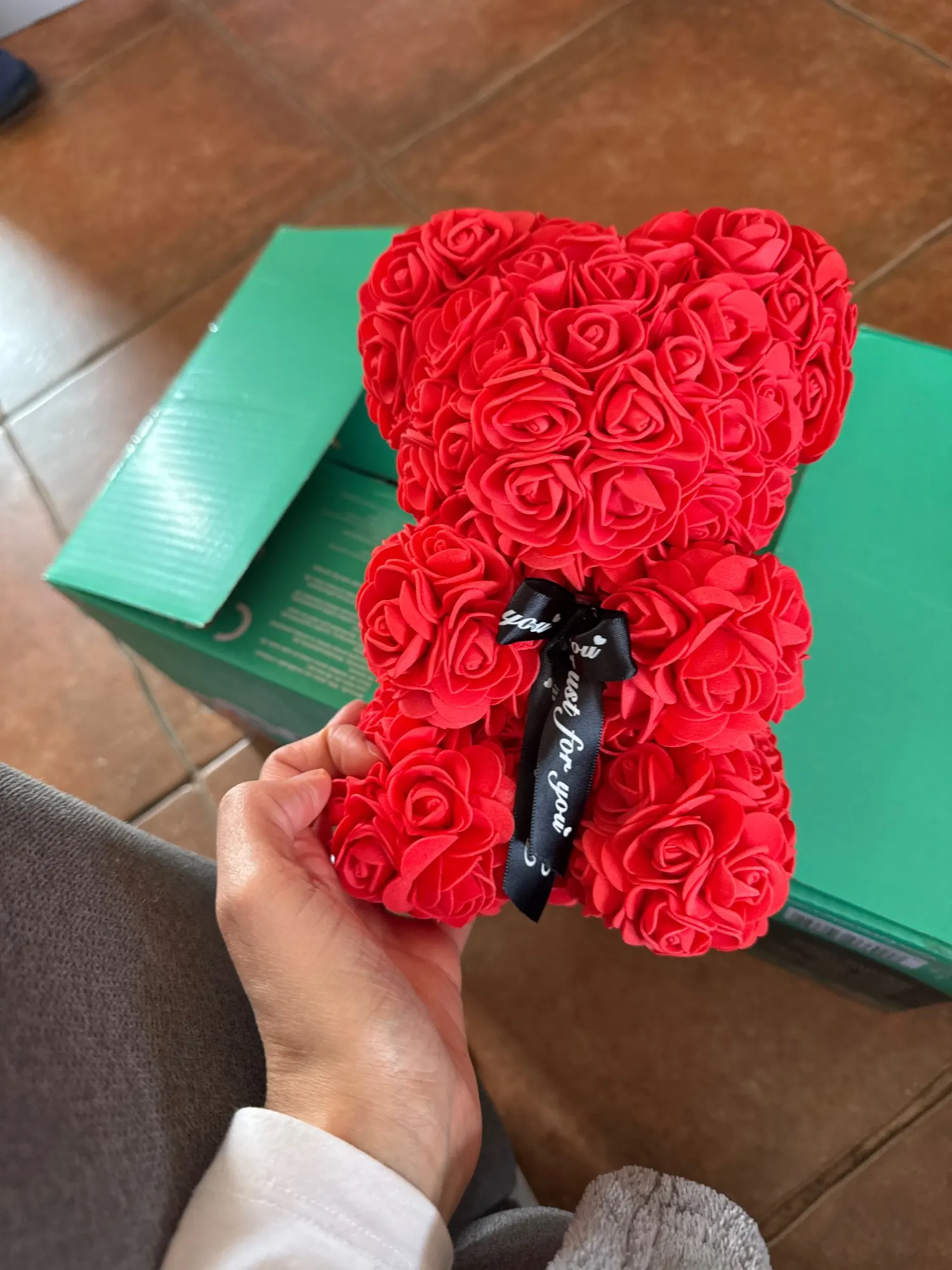 Mit einer Größe von 25 cm ist er ein eleganter Blickfang und bringt Romantik in jedes Zuhause. Ob für die Freundin, Ehefrau oder als liebevolle Überraschung – dieser Rosenbär sorgt garantiert für strahlende Augen.